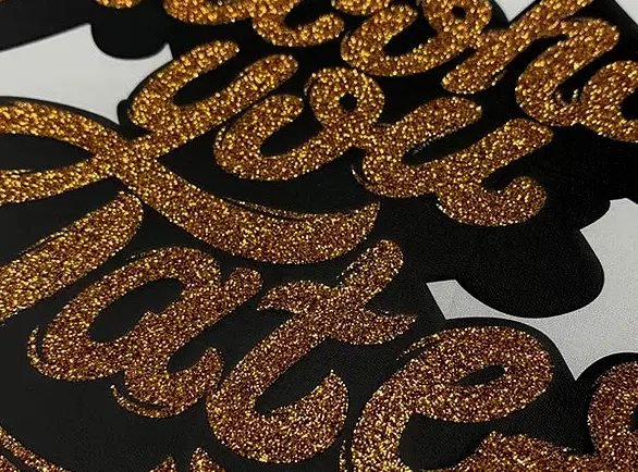 Opciones como glitter, flocado (afelpado), holográfico, metálico o fosforescente.